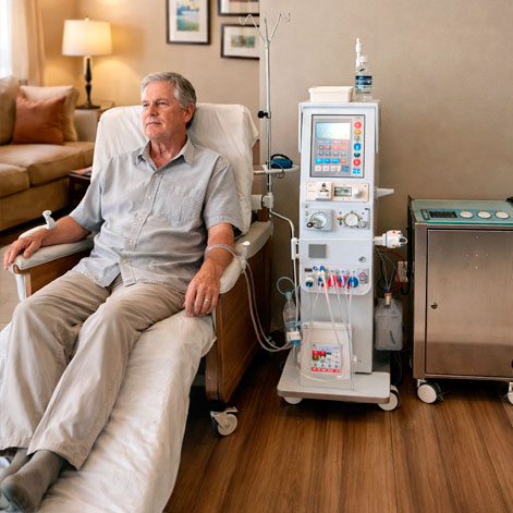 A Diálise Peritoneal Automatizada (DPA) é uma terapia renal substitutiva moderna e segura, realizada em ambiente domiciliar. Utiliza o peritônio como filtro natural, com auxílio de um sistema automatizado, geralmente durante a noite, proporcionando autonomia, conforto e flexibilidade. A FENIX Nefrologia realiza o treinamento, o acompanhamento contínuo e oferece suporte especializado ao paciente e/ou cuidador.